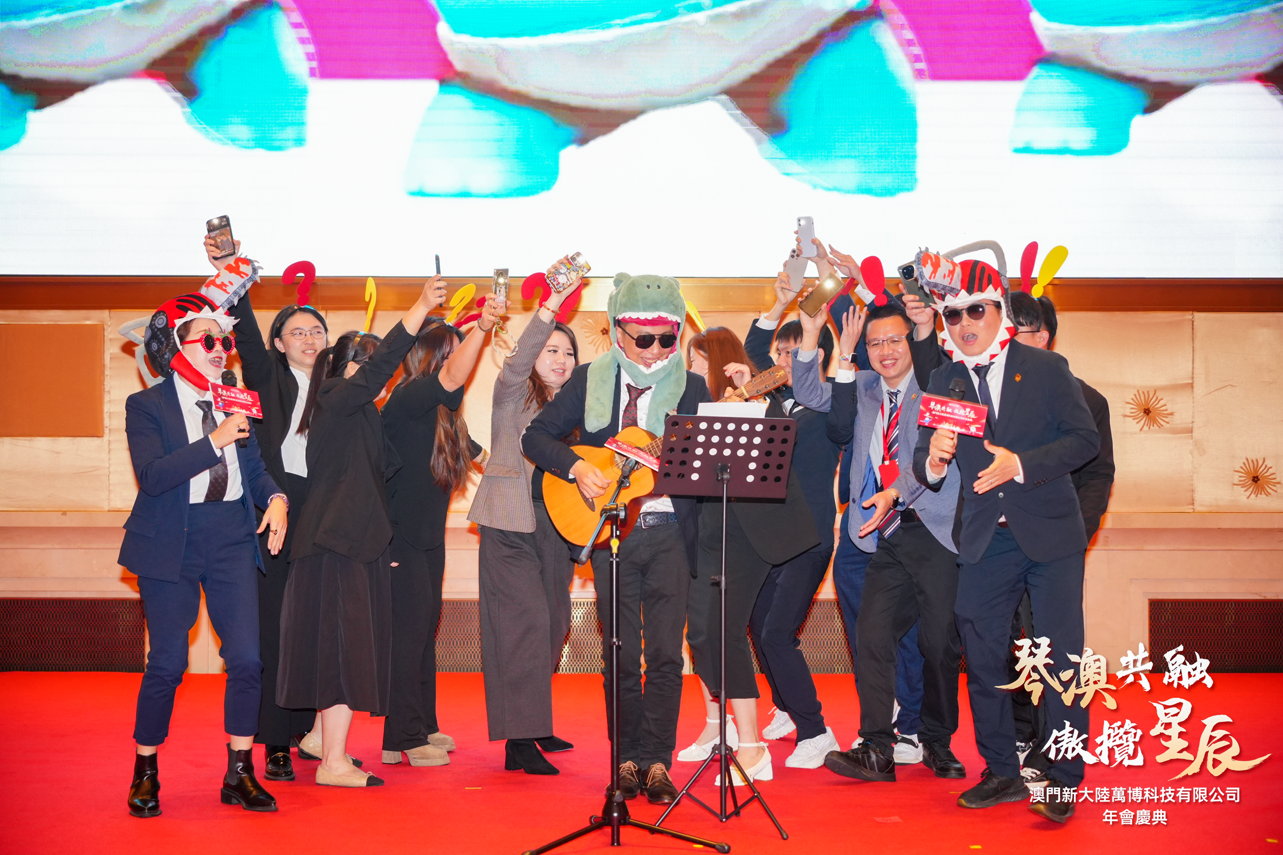 隨后,澳門新大陸萬博科技員工自編自排的精彩節目輪番上演。領導班子代表帶來的詩朗誦《展望新年2025》拉開了晚會序幕。隨后支付科技中心的吉他彈唱《最緊要好玩》展現了兩地青年的澎拜活力;數字科技中心擕員工子女共同演繹的小提琴獨奏及舞蹈《陽光數科》更是彰顯出“萬博一家人”的溫暖關懷深入人心;粵語金曲串燒《漫步人生路》《歲月如歌》悠揚的唱腔如同春風中的鳥鳴,贏得了觀衆的陣陣掌聲;由新大陸萬博青年委員發展會代表帶來的潮流舞蹈《APT》把現場氛圍推至高潮,勁歌熱舞點燃新時代發展的澎湃激昂之光。